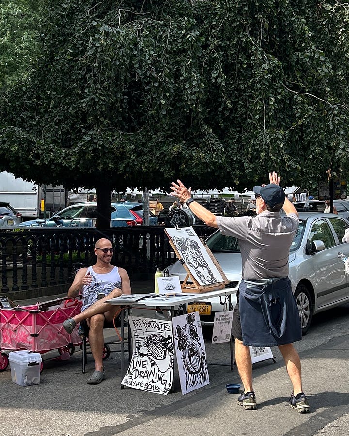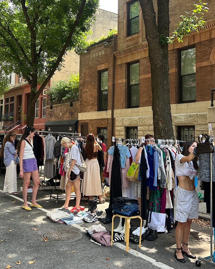 On the north end, starting about two blocks up from where Willoughby intersects Washington, this newer section of the market begins to take shape. Here, every weekend racks of clothes replace parked cars and fresh-from-your-neighbor’s oven cinnamon rolls top folding tables. There’s an energy that makes you think people may actually pay for your secret recipe sourdough starter or that experimental ceramics project (they will). These blocks are labeled—unofficially and only by us—WilMar (Willoughby Market), where the hobbies, side hustles, or new kitchen enterprises, by and for neighbors, are put on display. It could be that Fort Greene draws in a particularly entrepreneurial crowd or that everyone thinks they have something worth selling, but we suspect it may indicate more exciting shifts in how city streets are used.
