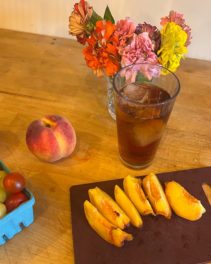 Arjun was kind enough to share some tea with Circle Back, which was promptly brewed into heat-combating iced tea, with Farmer’s Market peaches of course.